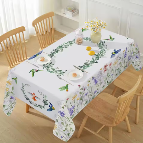 FLGMX006 Watercolor Wild Flowers Birds Rectangle Tablecloth Wedding Party Decor Summer Lavender Eucalyptus Leaves Table Cloth Table Decor