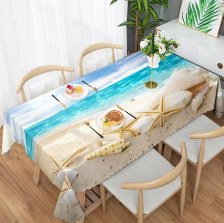 YSSXZ005 Ocean Beach Themed Rectangle Tablecloth Holiday Wedding Party Decor Summer Sea Shell Starfish Table Cover Kitchen Table Decor