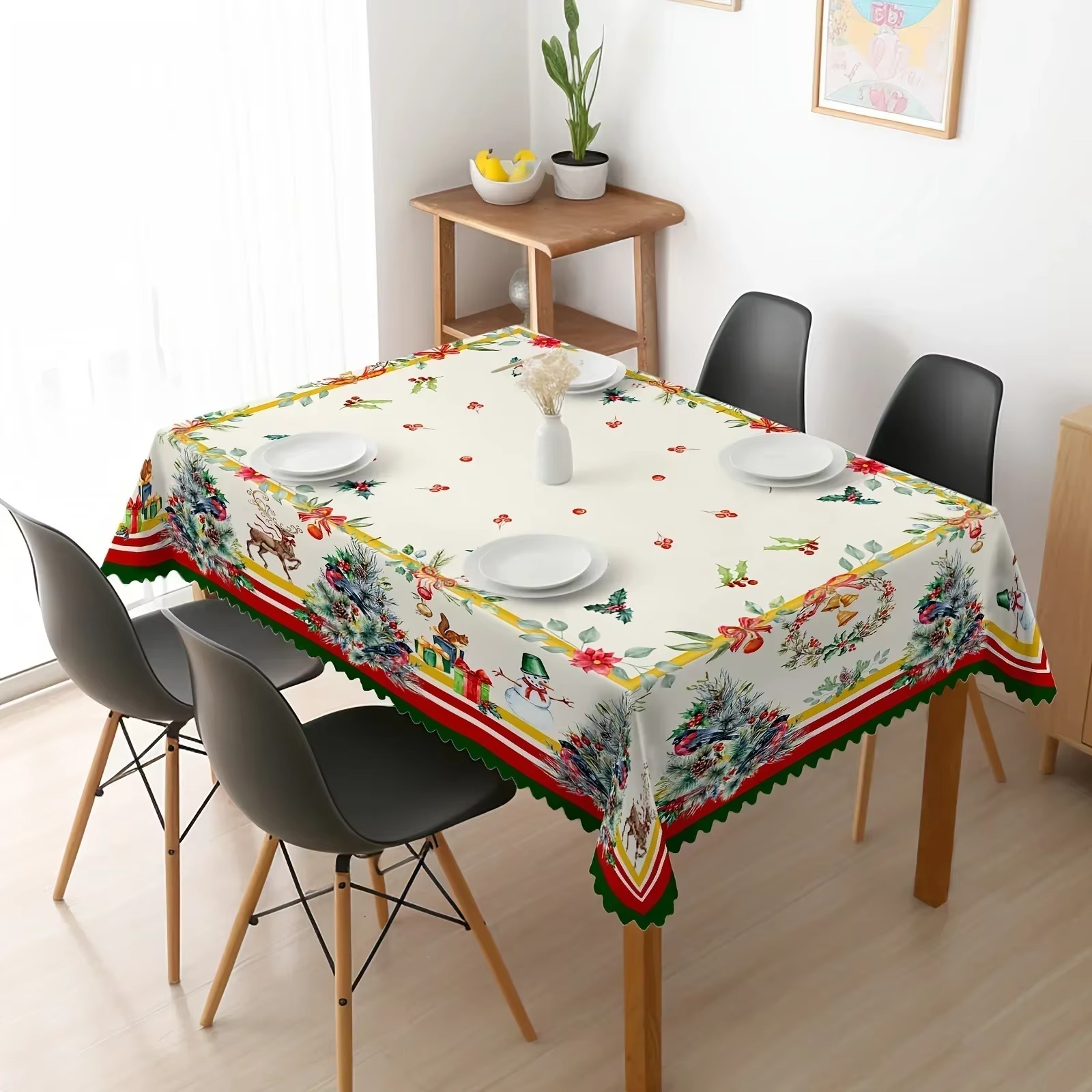 Tablecloth Pine Tree Colorful Butterflies Snowman Pattern Table Cloth Holiday Desktop Decoration Home LULBB002