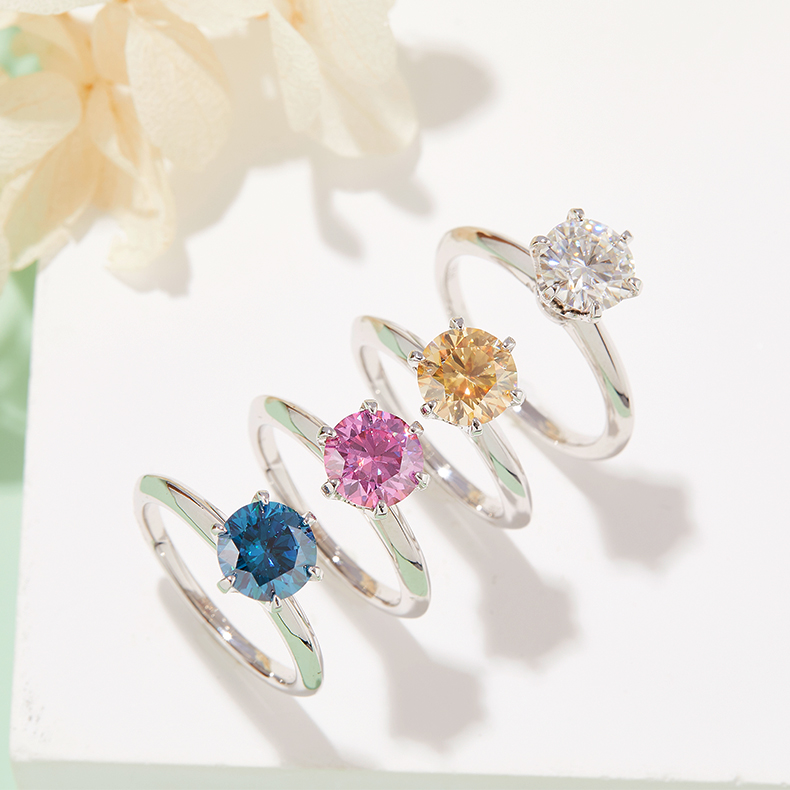 Bare arm T home six-claw S925 silver plated platinum moissanite diamond ring for women 1.5 carat D grade M03G