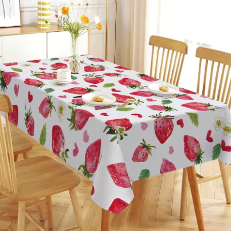 KPBD01 Summer Strawberry Rectangle Tablecloth Wedding Party Home Decor Washable Sweet Fruit Love Heart Table Cloths Kitchen Table Decor