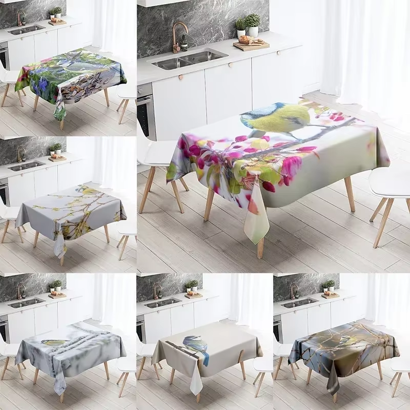 RDW1 Hummingbird Tablecloth Cute Bird Stain Resistant Waterproof Rectangular Kitchen Table Home Decoration