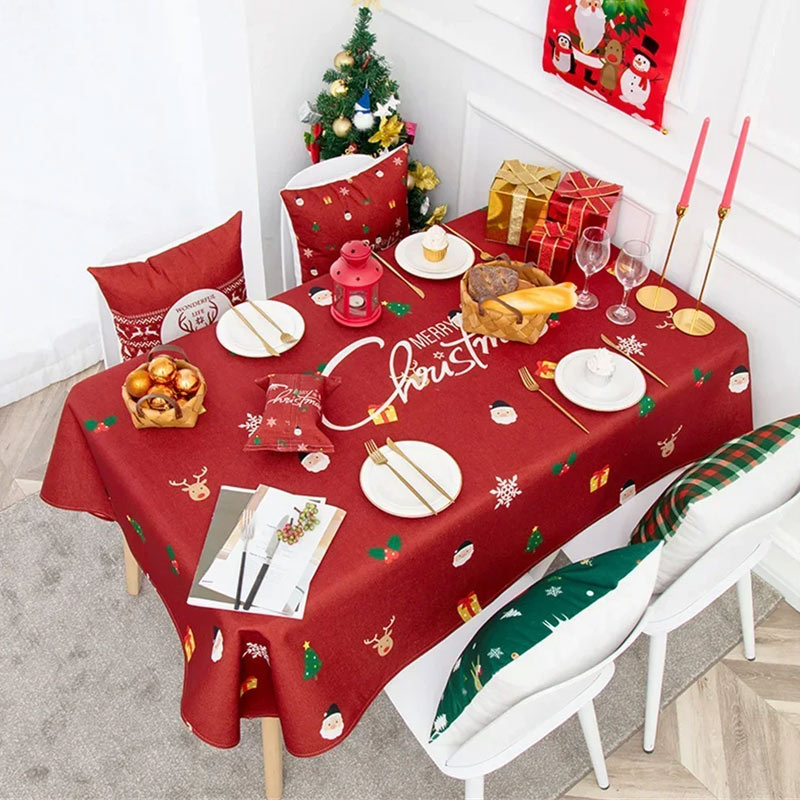 SJS11 Santa Pine Table Cloth Red Elk Plaid Christmas Wedding Party Tablecloth Kitchens Dining Tablecover