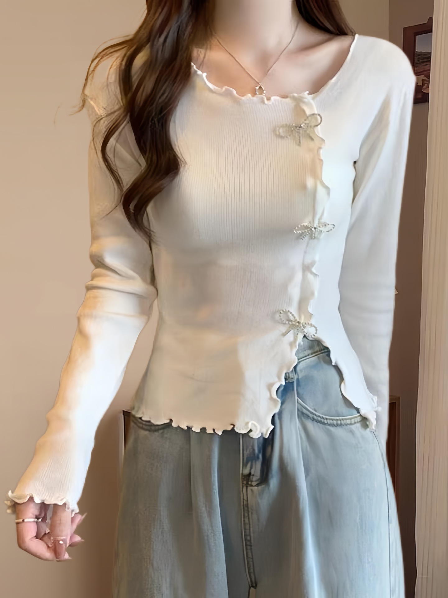 SS152 Irregular wooden ear edge long-sleeved knitted sweater women autumn and winter new design jumper hundred bottoming shirt tops